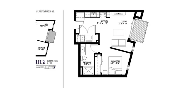 Apartments feature sleek interiors, high ceilings, natural light and city views. To complete your living experience, our amenities include a roof-top terrace overlooking the arena grounds, a spacious fitness room, connected sky-walk to the Fiserv Forum.